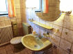 - Im ca. 7 qm großen Badezimmer ist eine Badewanne, eine Dusche (extra), 0,75 x 0,75 m (mit Kabine extra), eine Toilette, ein Waschtisch mit großem Spiegel, Badetuch-Handtuchhalter und Föhn.