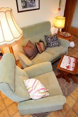 - Das Wohnzimmer ist mit gutem Komfort ausgestattet, u.a. mit Kabel-Flat, 40 Zoll, Full HD, Smart-TV (großer Flachbildschirm, ca. 1,00 m), alter Plattenspieler, CD, Radio, Sitzgruppe, ein Zweiersofa, ein Couch-Sessel und Tisch, ein großer Ess- und Arbeitstisch mit 3 Stühlen, ein Fluter, eine Tischlampe und eine Leselampe.